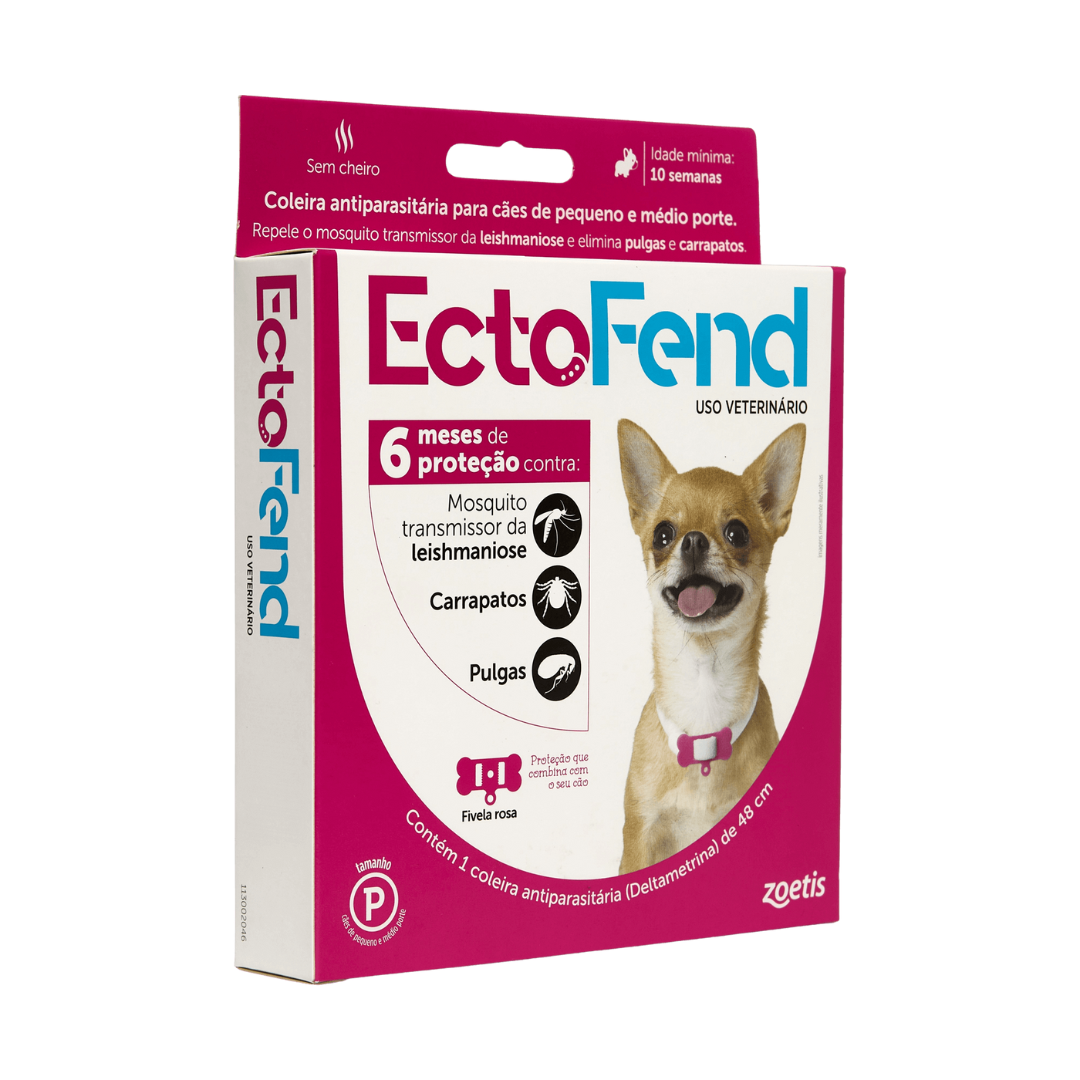 A Coleira Ectofend Rosa 48cm é a escolha ideal para proteger cães de porte pequeno contra parasitas que prejudicam a saúde e o bem-estar. Desenvolvida pela Zoetis, empresa referência em saúde animal, a coleira possui deltametrina, um ativo poderoso que combate pulgas, carrapatos e ainda atua como repelente contra o mosquito-palha, transmissor da leishmaniose.
