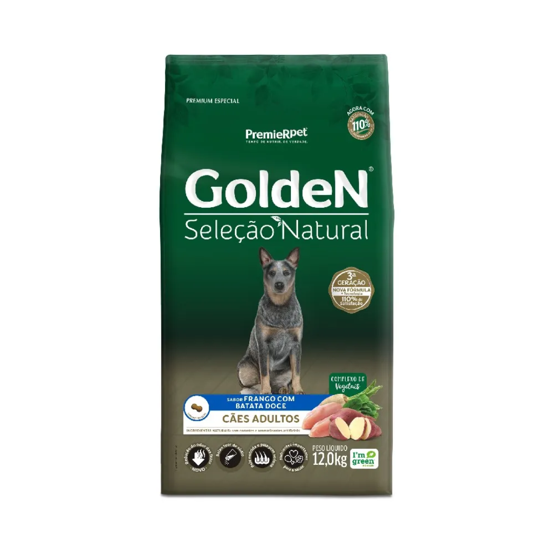 A Ração Golden Seleção Natural é a escolha ideal para tutores que buscam uma alimentação mais próxima do natural para seus cães, sem abrir mão da praticidade e da nutrição completa. Formulada com um complexo de 8 vegetais, esta receita utiliza o frango como fonte proteica de alta qualidade e a batata doce como carboidrato de baixo índice glicêmico.
