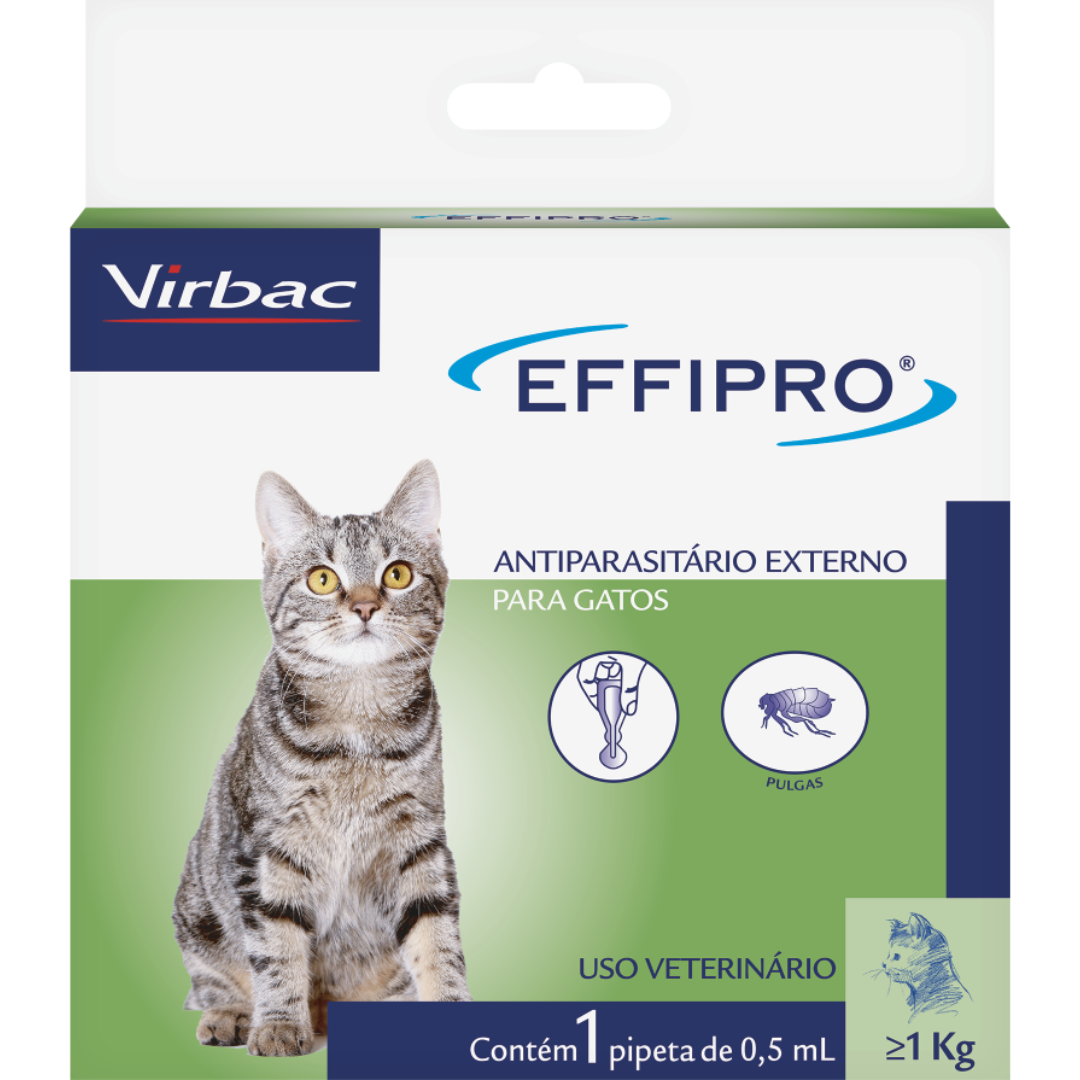 Effipro Gatos: Proteção Eficaz Contra Pulgas O Effipro Gatos é um tratamento de uso tópico (pipeta) à base de Fipronil, reconhecido mundialmente pela sua rapidez em eliminar parasitas. Desenvolvido especificamente para a fisiologia dos felinos, ele age diretamente no sistema nervoso dos insetos, garantindo um ambiente e um pet muito mais saudáveis. Por que escolher o Effipro? Ação Rápida: Começa a eliminar as pulgas logo após a aplicação, interrompendo o ciclo de picadas que causa irritação e alergias (como a DAPP). Proteção Prolongada: Uma única aplicação protege o seu gato por até 4 semanas contra novas infestações de pulgas. Segurança e Precisão: A pipeta conta com o sistema "Drop-Stop", que permite a aplicação exata sem desperdícios e sem que o produto escorra nos seus dedos. Resistente à Água: Mantém a eficácia mesmo que o animal se molhe (respeitando o intervalo de 48h após a aplicação). Como o Effipro funciona? O princípio ativo, Fipronil, se espalha naturalmente pela gordura da pele e pelos do gato. Ele não precisa entrar na corrente sanguínea para agir; o parasita morre ao entrar em contato com o pelo do animal. Isso é ideal para evitar que a pulga precise picar o gato para ser eliminada. Instruções de Uso e Cuidados Mantenha o gato em pé e afaste os pelos na região da nuca (onde ele não consegue lamber). Aplique todo o conteúdo da pipeta diretamente na pele. Evite dar banhos nos 2 dias anteriores e 2 dias posteriores à aplicação para garantir a absorção total. Pode ser utilizado em gatos e filhotes a partir de 8 semanas de vida ou com peso superior a 1kg. Dica Pro: Para um controle total, lembre-se que 95% das pulgas estão no ambiente (tapetes, sofás e caminhas). Enquanto trata o seu gato com Effipro, faça também a higienização do local onde ele dorme.