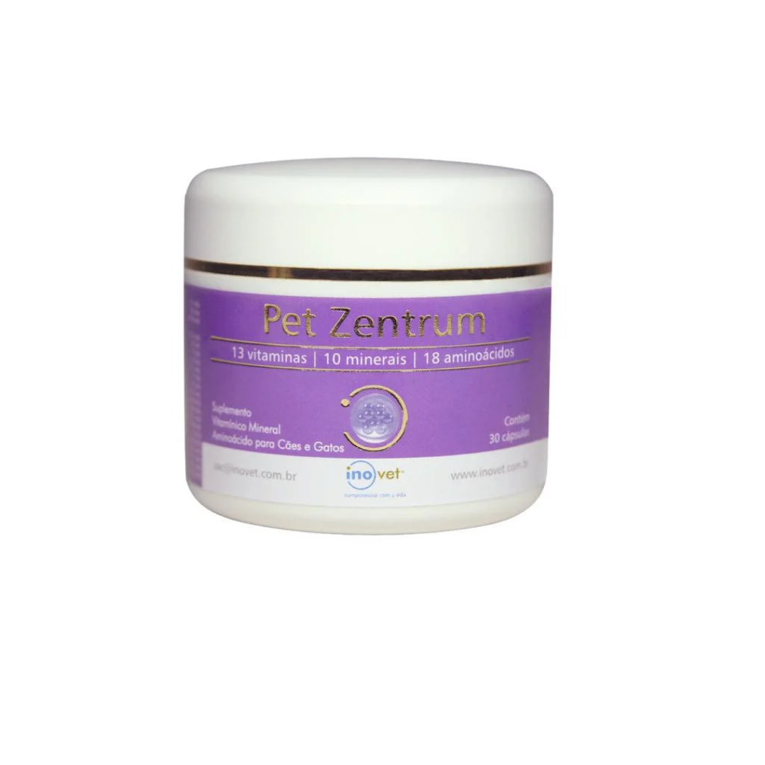 Pet Zentrum 30 Cápsulas é um suplemento vitamínico e mineral recomendado para cães e gatos de todas as idades. Ele auxilia na manutenção da saúde geral do animal, fornecendo nutrientes que podem estar faltando na dieta.