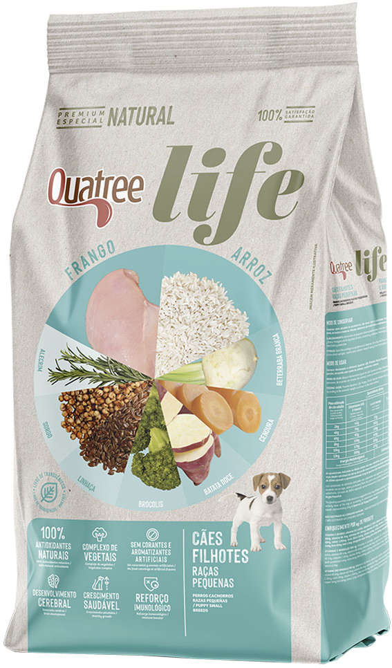 Garanta já a Quatree Life Filhotes Raças Pequenas e ofereça uma nutrição completa e equilibrada para seu melhor amigo crescer forte, feliz e cheio de energia!